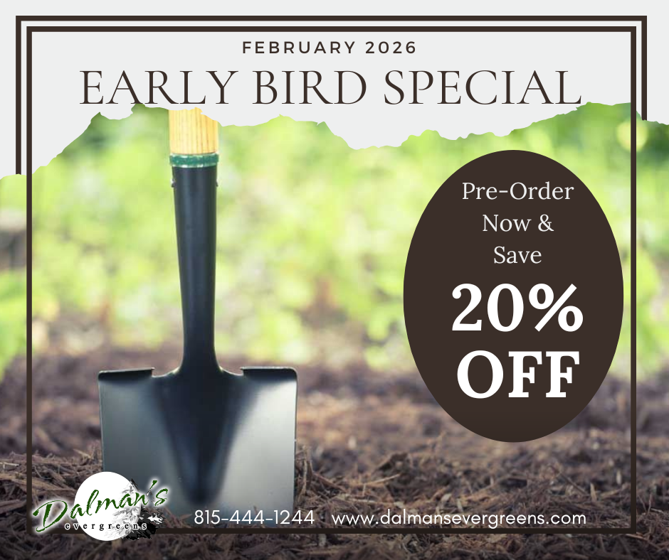 Dalman's own Aged Mulch is proudly made onsite Evergreens each year in the spring by owner Matt Dalman.